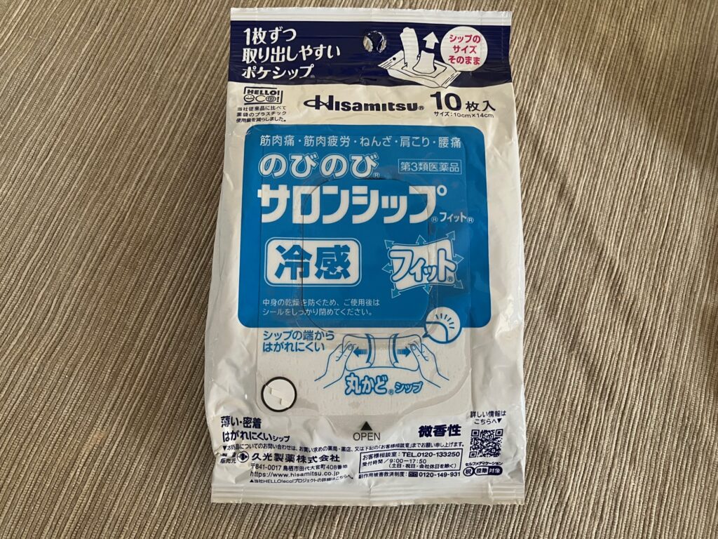 まずはすぐに出来る応急処置をと、近くのドラックストアで湿布を探しました。今は制汗シートの入ったパックと同じような包装で湿布が売られていて、持ち運びやすいように企業さんも工夫しているのだなと感心。