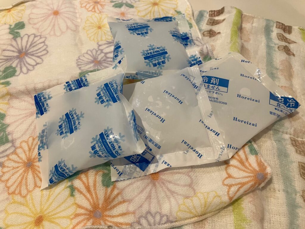(↑買い物でよくもらった保冷剤がここでも活躍してくれました。)