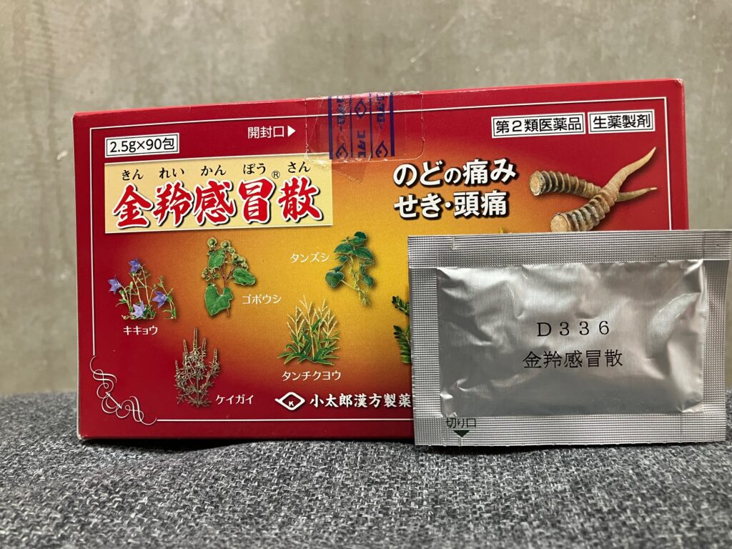 当店では『金羚感冒散(きんれいかんぼうさん)』という商品名の取り扱いをしています。
