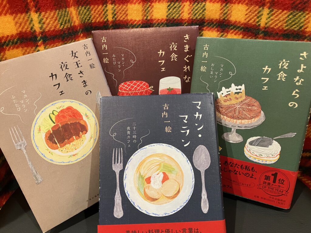 マカン・マランとは、インドネシア語で”夜食”。夜のカフェには暖かく柔らかい時間が流れ、悩みを抱えた人たちを優しくほぐしてくれる場所。始まりはカフェ店主とたまたま見つけたお客さんとのお話、シリーズが進むにつれお客さんからのつながりが輪を広げて、個性豊かで立場も年代もバラバラなキャラクターが増えていきます。出てくるメニューはその時々、店主の思いのまま。薬膳やマクロビ、アーユルヴェーダの考えを取り入れたり、世界中のお菓子や文化についても話題になったり、色々な側面から楽しめるお話です。巻末には参考文献が載っているので、興味のあるところは深堀しやすい。